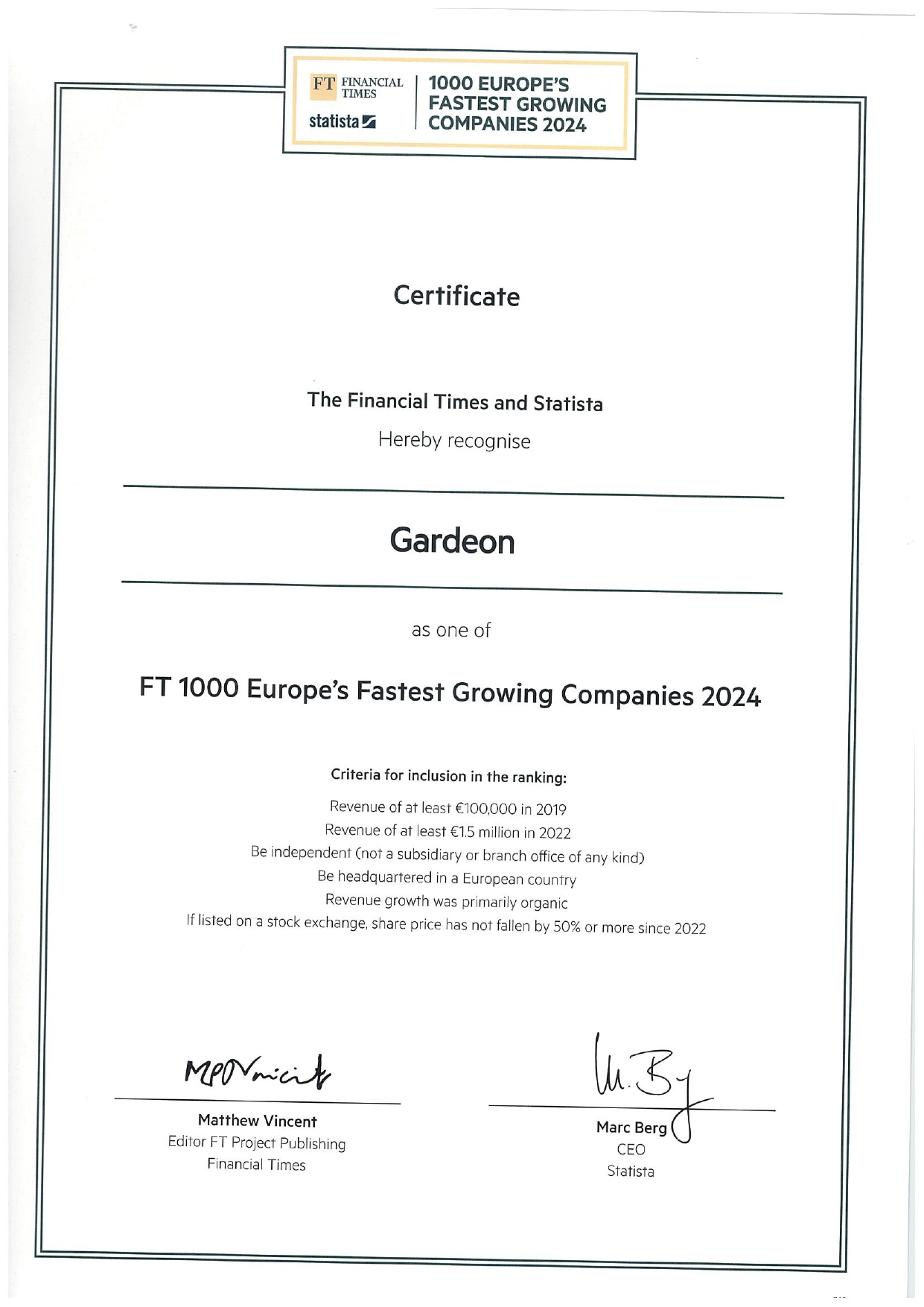 Achieving significant success is not easy, but defending it is often even harder. We did it! For the second time in a row, GARDEON has been ranked in the prestigious list of the fastest growing companies in Europe, up more than 200 places compared to last year. For a family-owned company from a small village in Central Slovakia, this is an incredible triumph.