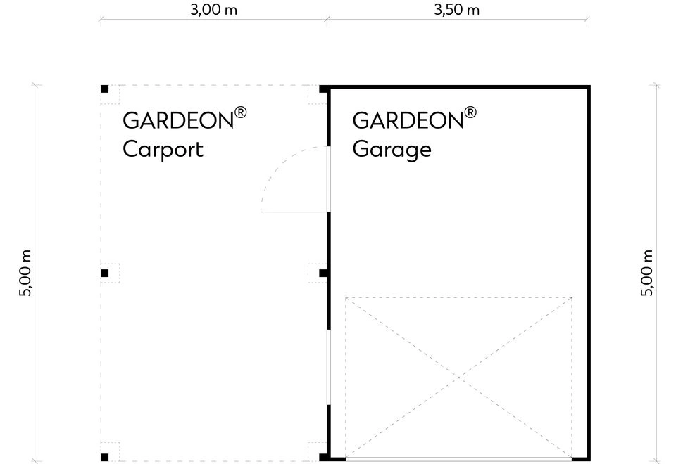 Discover an innovation in the construction industry - GARDEON® prefabricated garages with ready-made designer plaster from the Swiss brand KABE. The all-season facade is self-cleaning and can withstand water, high temperatures and all the vagaries of the weather with ease. Thanks to our unique technology, the steel wall is only 5 cm thick - much thinner than a 20 cm thick conventional brick wall. You will save significantly on space in your garden and inside your garage.