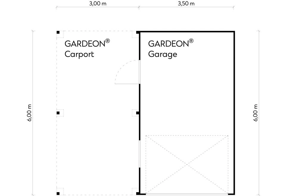 GARDEON® Garage with door, window and left carport