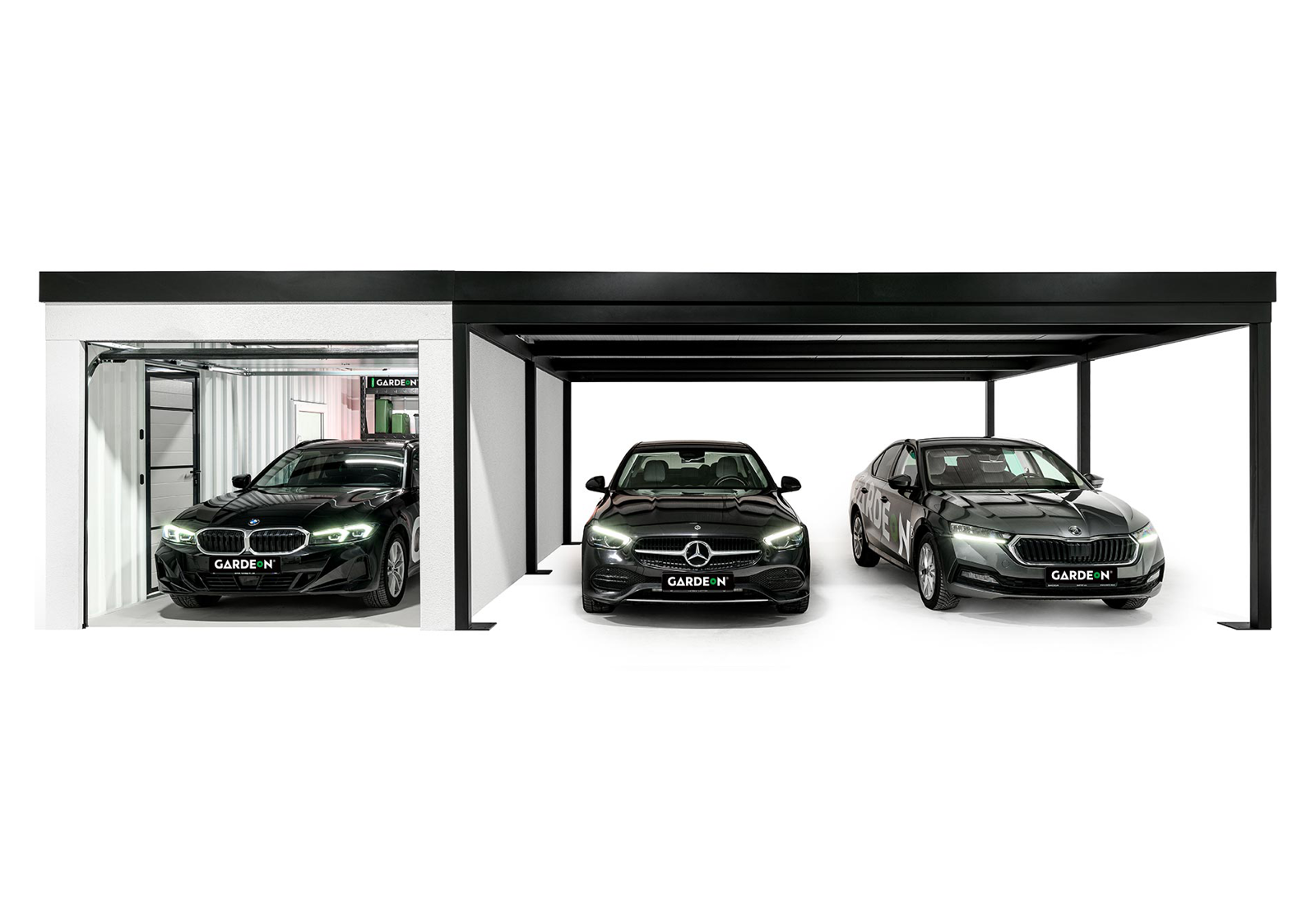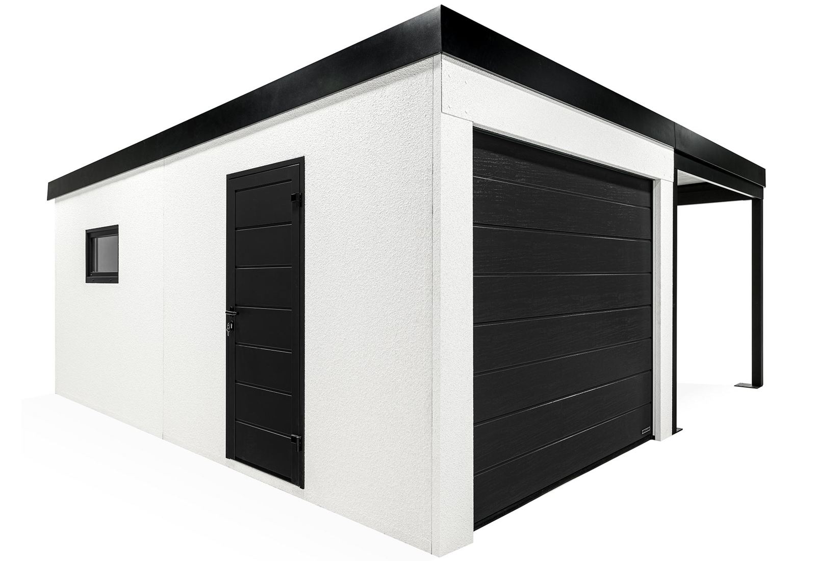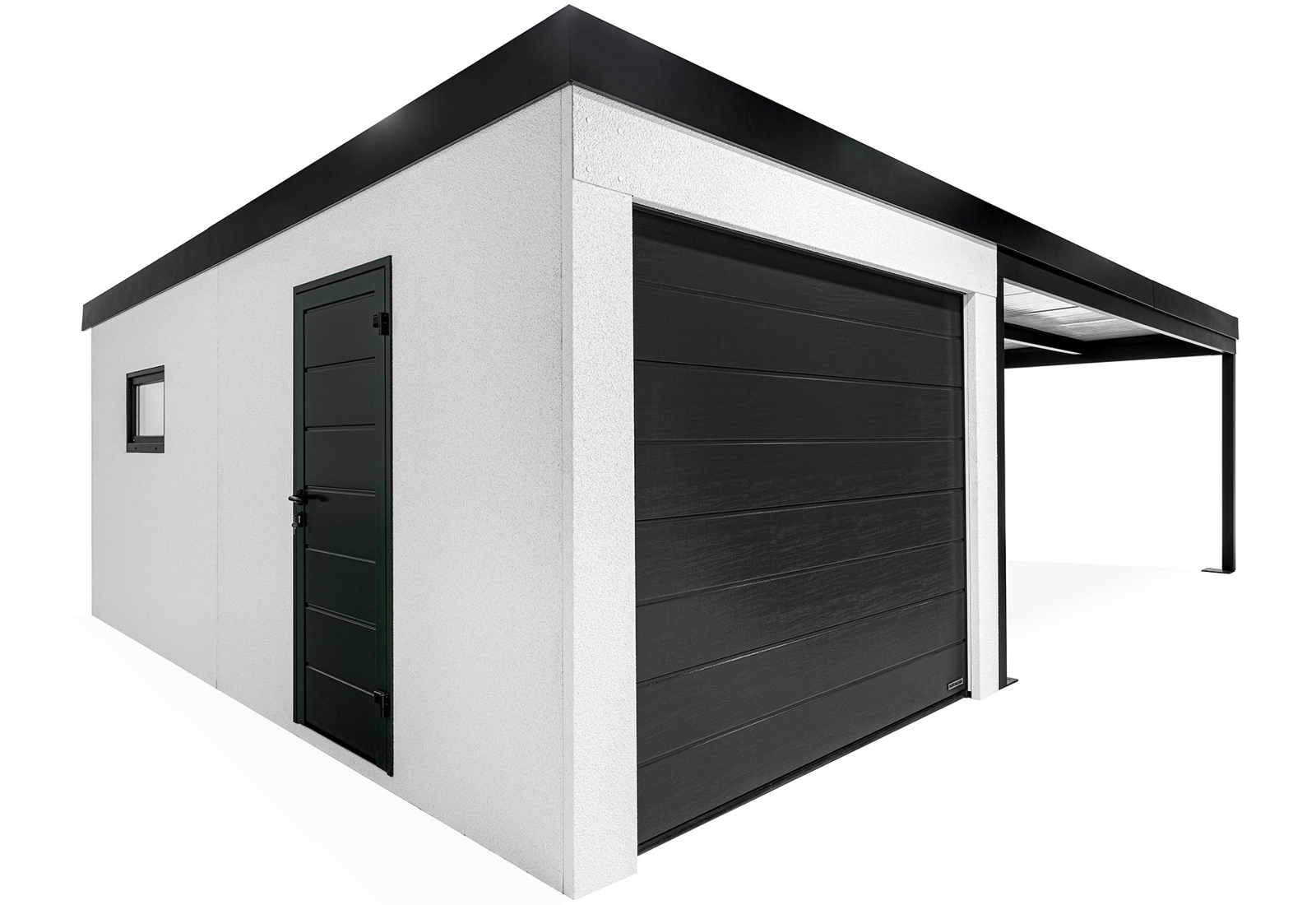Discover an innovation in the construction industry - GARDEON® prefabricated garages with ready-made designer plaster from the Swiss brand KABE. The all-season facade is self-cleaning and can withstand water, high temperatures and all the vagaries of the weather with ease. Thanks to our unique technology, the steel wall is only 5 cm thick - much thinner than a 20 cm thick conventional brick wall. You will save significantly on space in your garden and inside your garage.