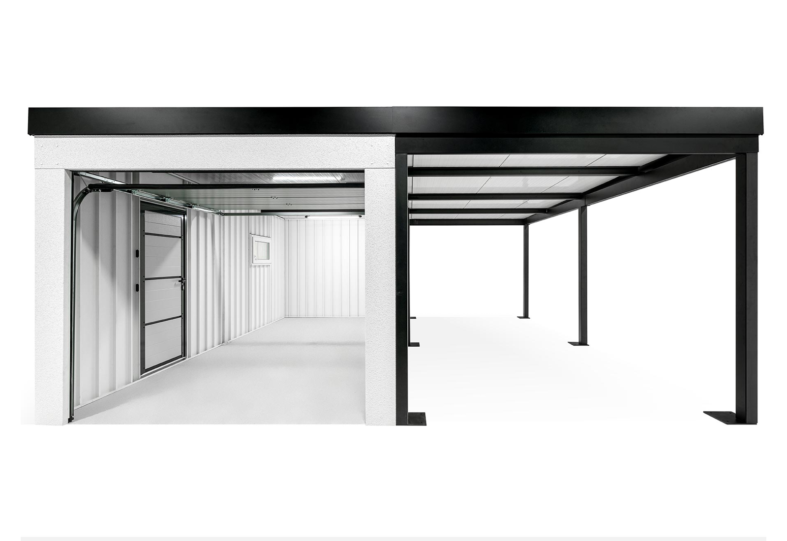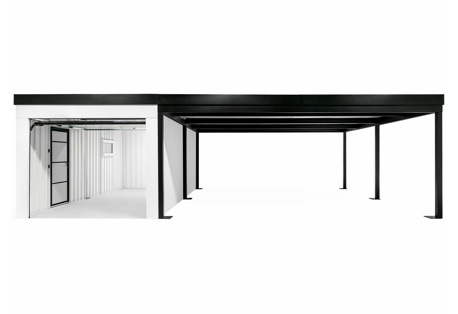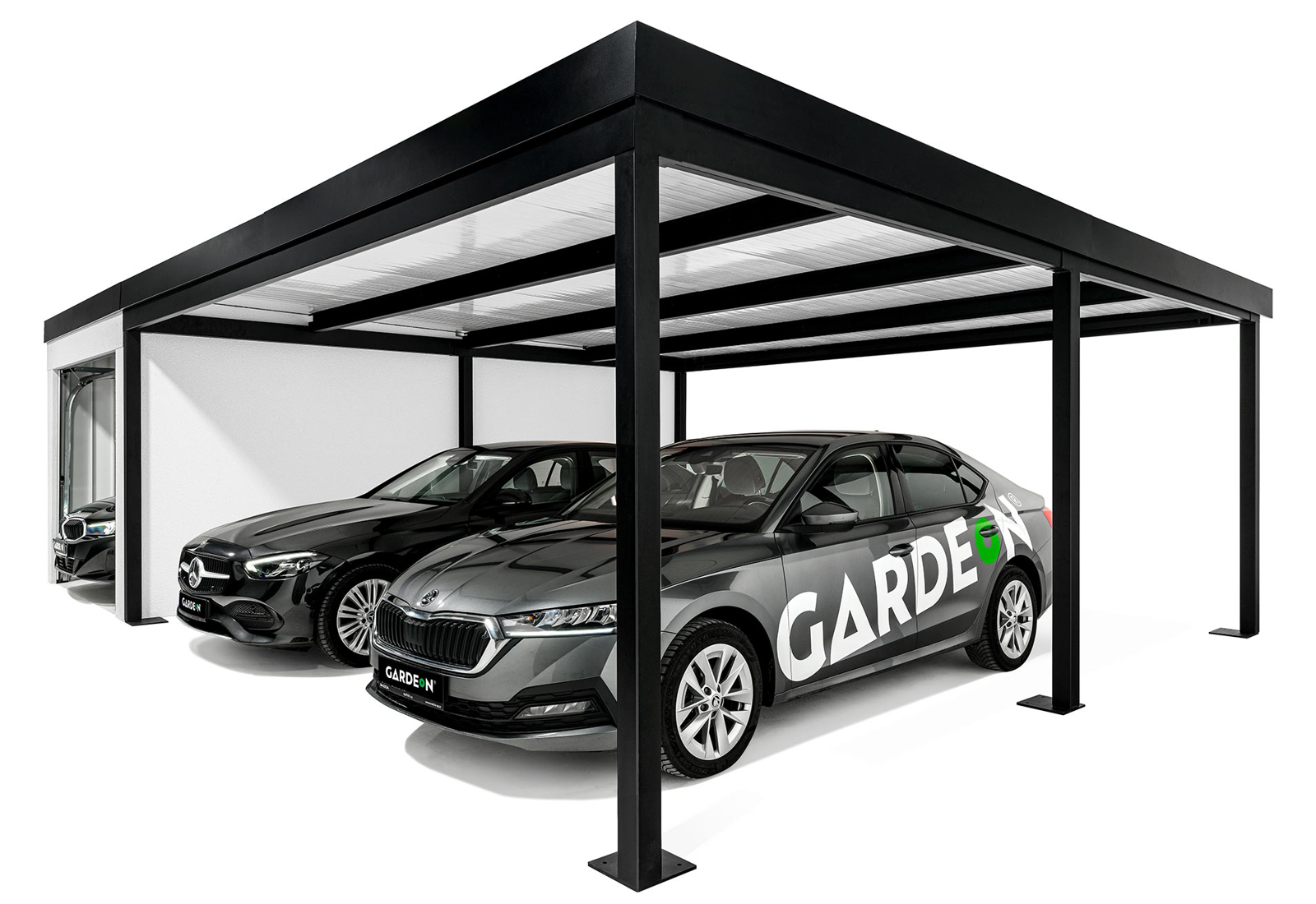 Discover an innovation in the construction industry - GARDEON® prefabricated garages with ready-made designer plaster from the Swiss brand KABE. The all-season facade is self-cleaning and can withstand water, high temperatures and all the vagaries of the weather with ease. Thanks to our unique technology, the steel wall is only 5 cm thick - much thinner than a 20 cm thick conventional brick wall. You will save significantly on space in your garden and inside your garage.