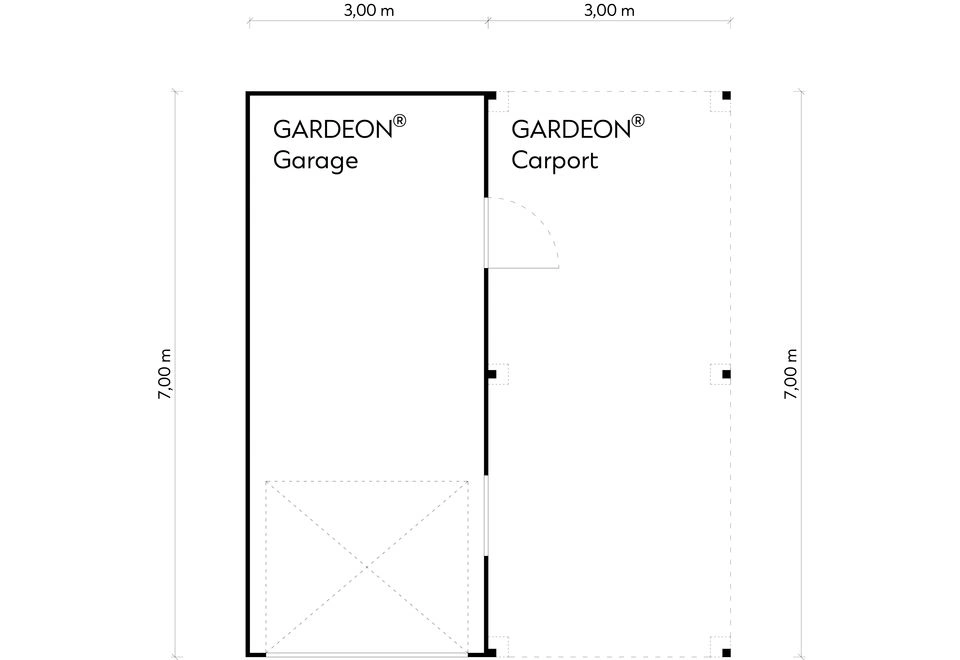 GARDEON® Garage with door, window and right carport
