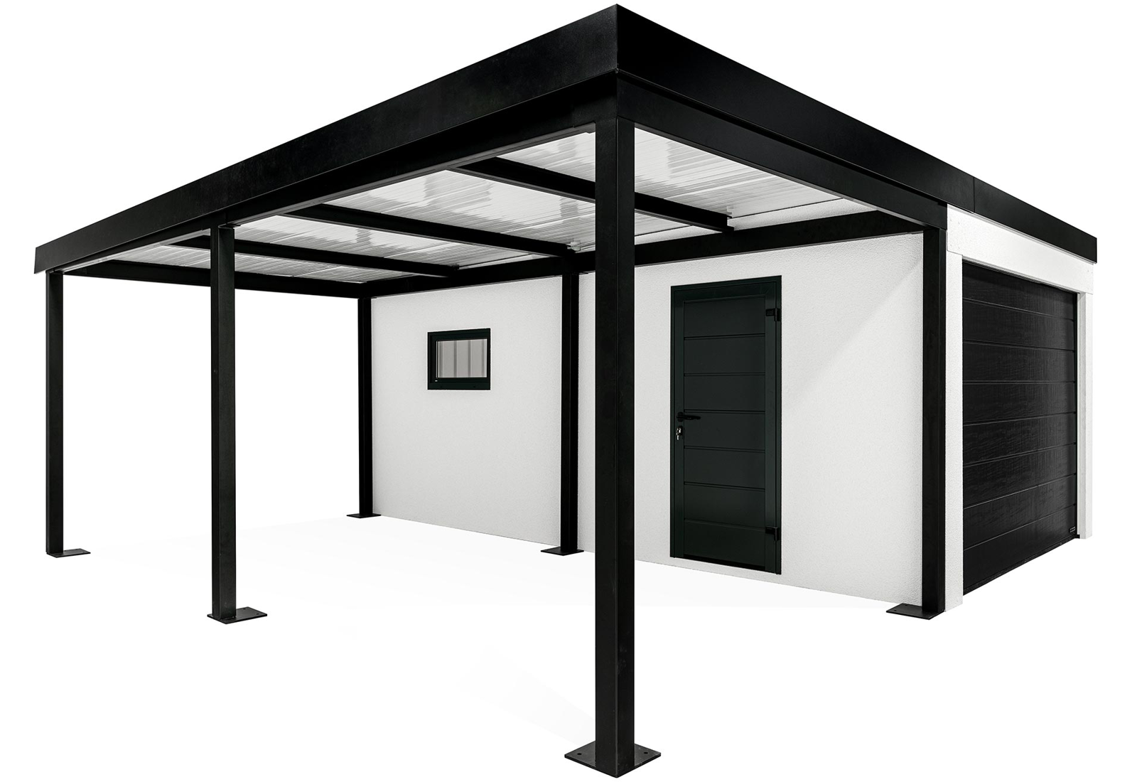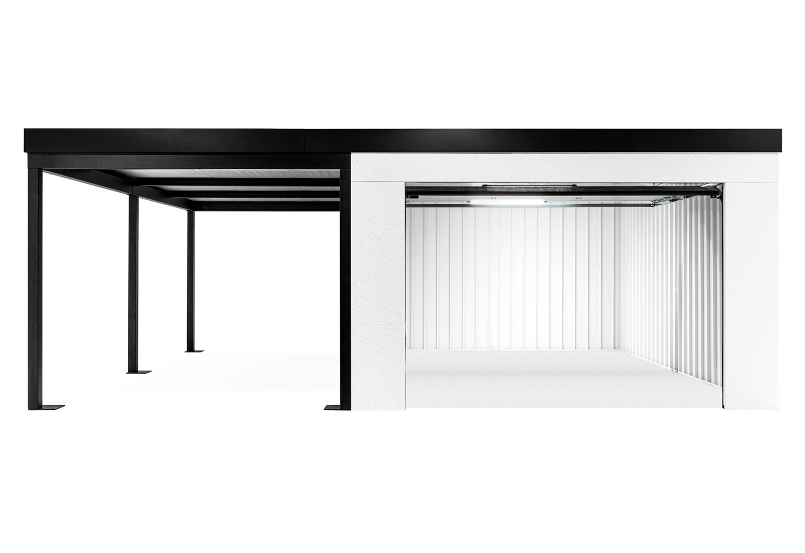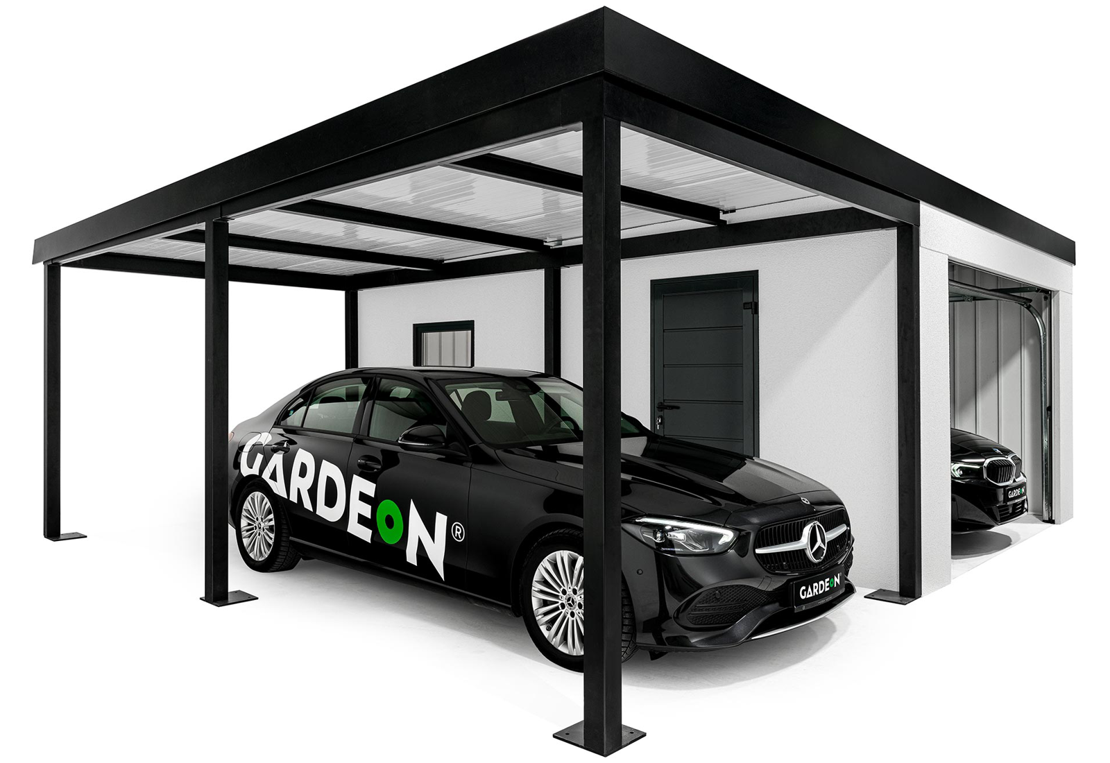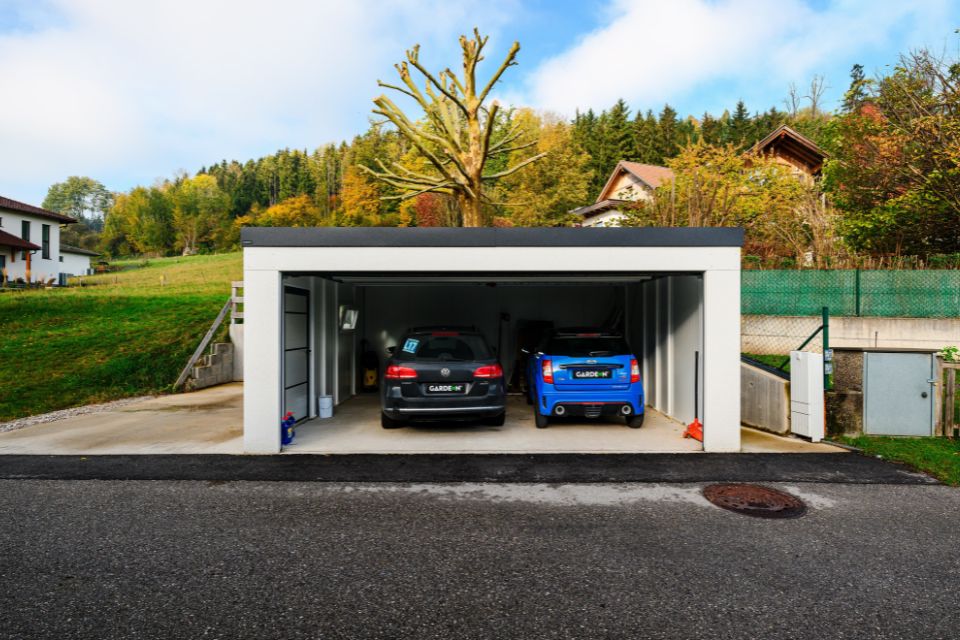 Discover an innovation in the construction industry - GARDEON® prefabricated garages with ready-made designer plaster from the Swiss brand KABE. The all-season facade is self-cleaning and can withstand water, high temperatures and all the vagaries of the weather with ease. Thanks to our unique technology, the steel wall is only 5 cm thick - much thinner than a 20 cm thick conventional brick wall. You will save significantly on space in your garden and inside your garage.