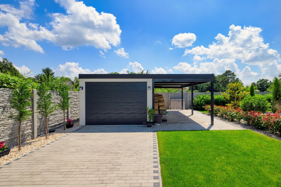 Garden house with Hormann safety garage door | Gardeon | Gardeon