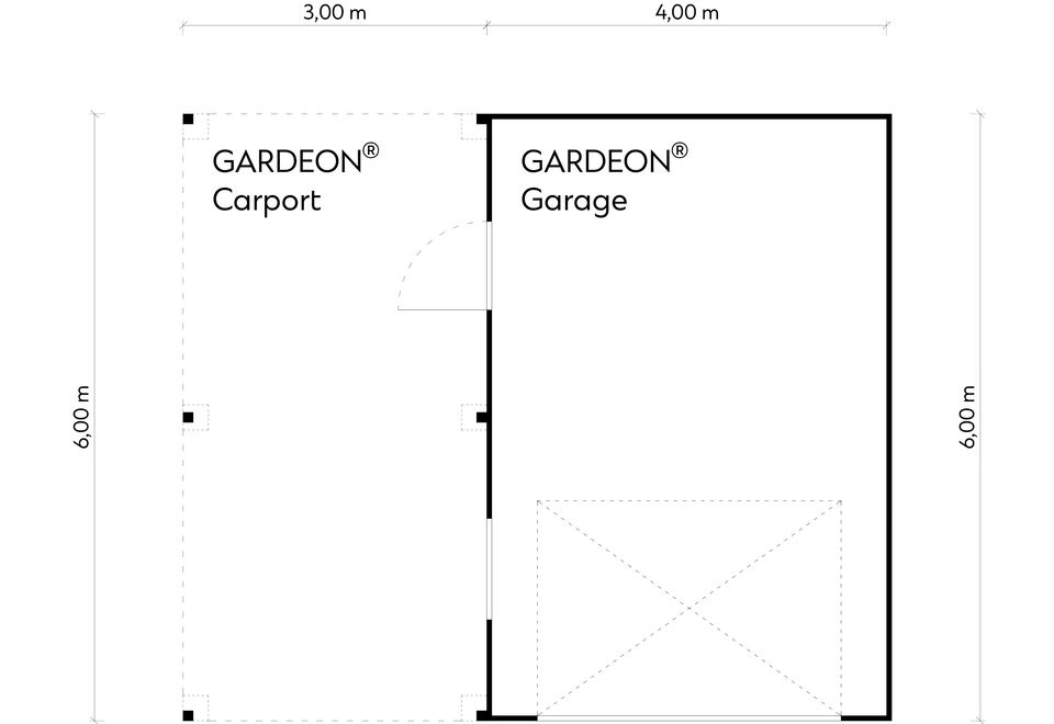 GARDEON® Garage with door, window and left carport