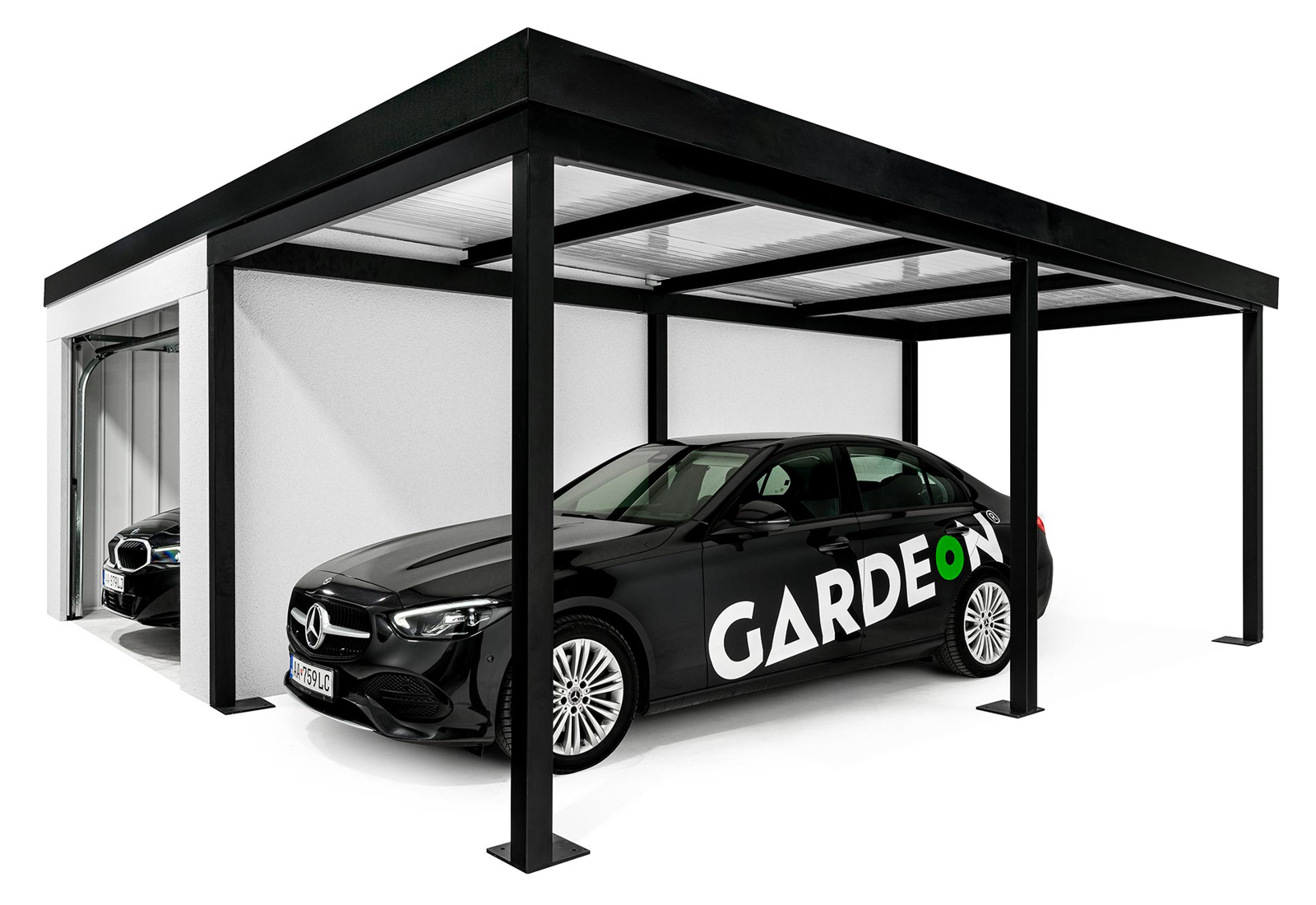 Discover an innovation in the construction industry - GARDEON® prefabricated garages with ready-made designer plaster from the Swiss brand KABE. The all-season facade is self-cleaning and can withstand water, high temperatures and all the vagaries of the weather with ease. Thanks to our unique technology, the steel wall is only 5 cm thick - much thinner than a 20 cm thick conventional brick wall. You will save significantly on space in your garden and inside your garage.