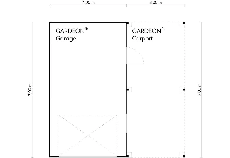 GARDEON® Garage with door, window and right carport