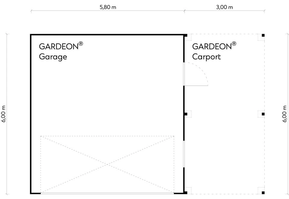 GARDEON® Garage with door, window and right carport
