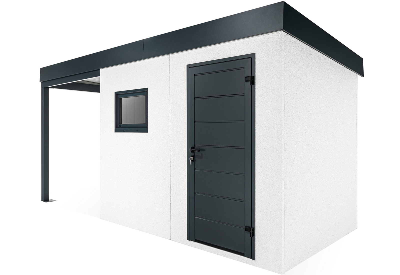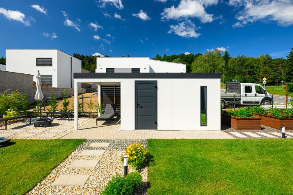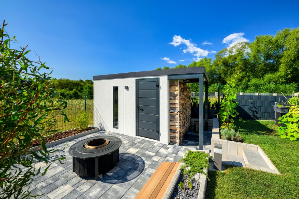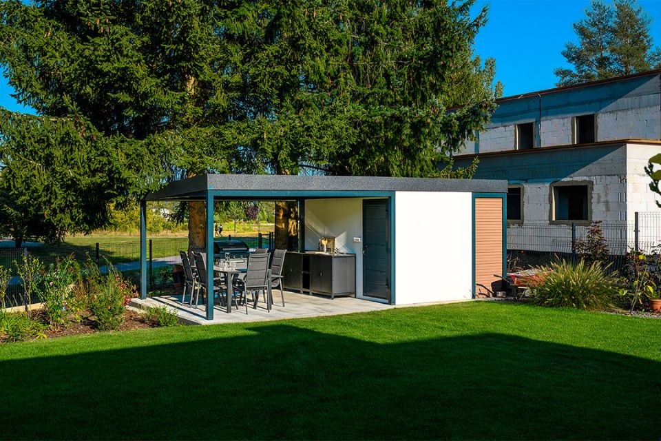 Discover an innovation in the construction industry - GARDEON® prefabricated garden houses with ready-made designer plaster from the Swiss brand KABE. The all-season facade is self-cleaning and can withstand water, high temperatures and all the vagaries of the weather with ease. Thanks to our unique technology, the steel wall is only 5 cm thick and, compared to a 20 cm thick conventional brick wall, you will save significantly on space in your garden and inside your garden house.