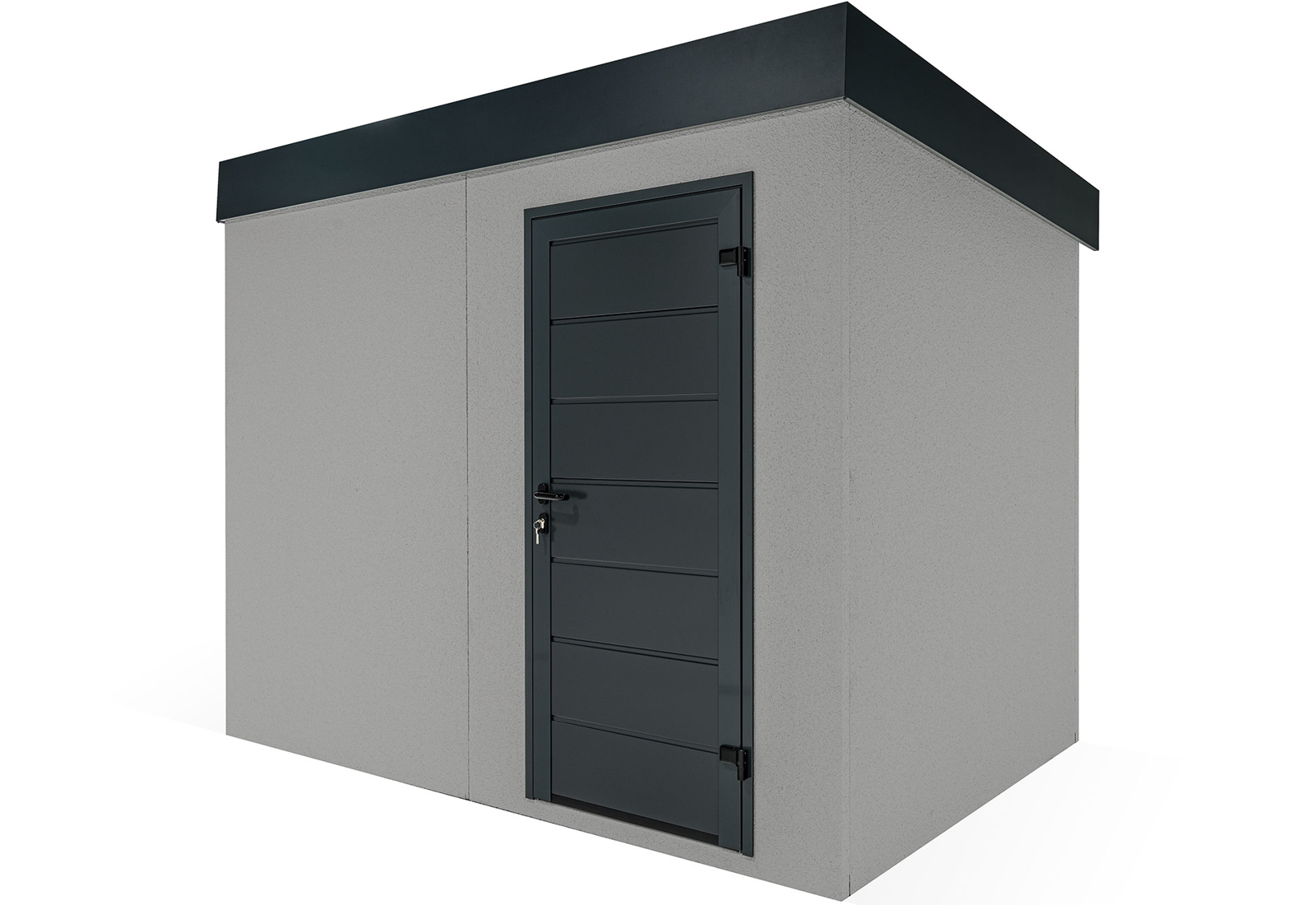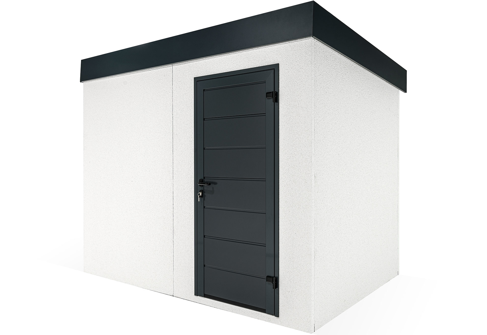 Discover an innovation in the construction industry - GARDEON® prefabricated garden houses with ready-made designer plaster from the Swiss brand KABE. The all-season facade is self-cleaning and can withstand water, high temperatures and all the vagaries of the weather with ease. Thanks to our unique technology, the steel wall is only 5 cm thick and, compared to a 20 cm thick conventional brick wall, you will save significantly on space in your garden and inside your garden house.
