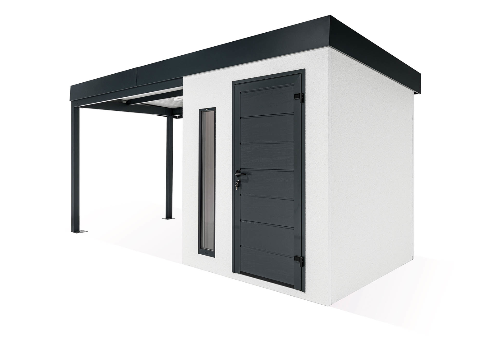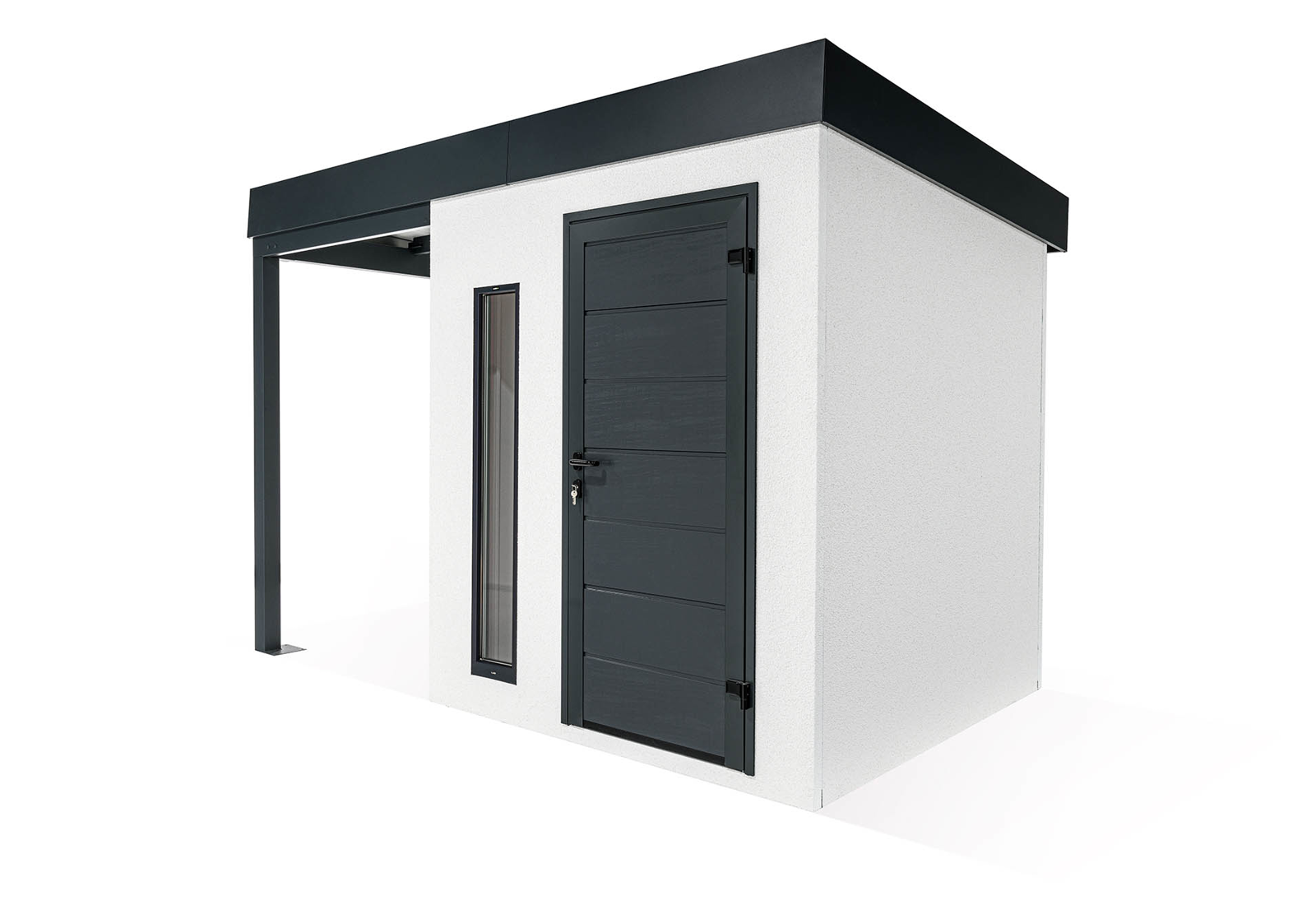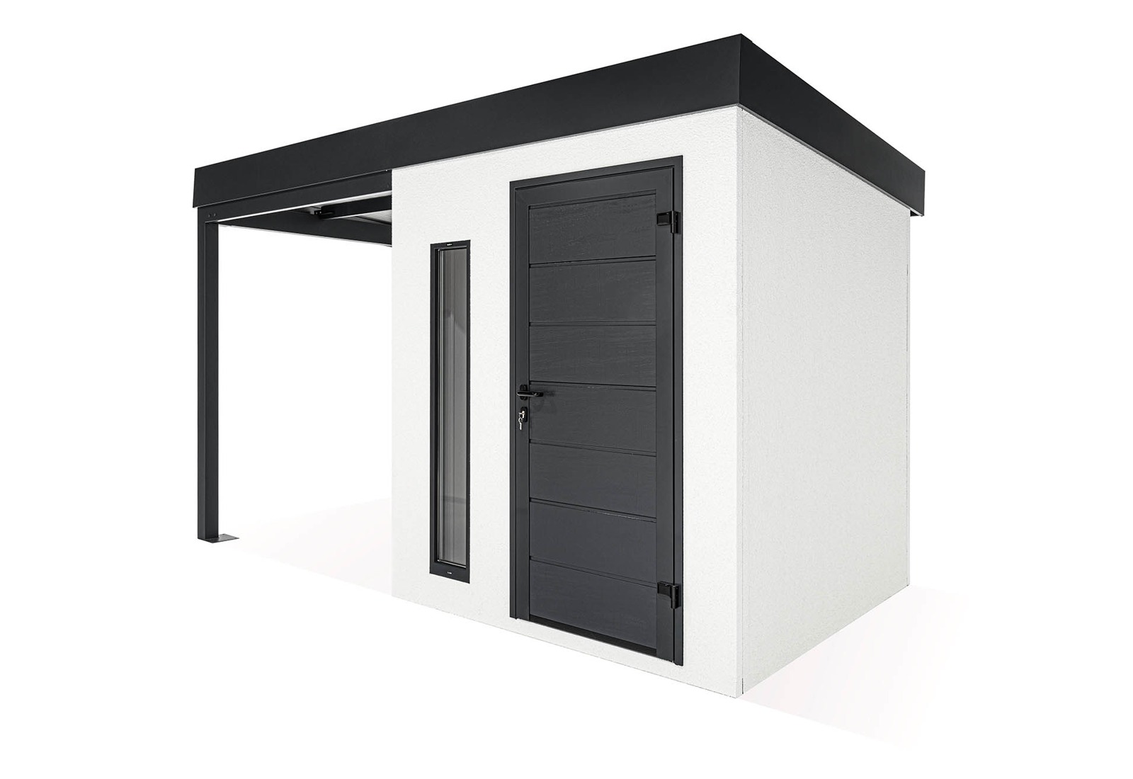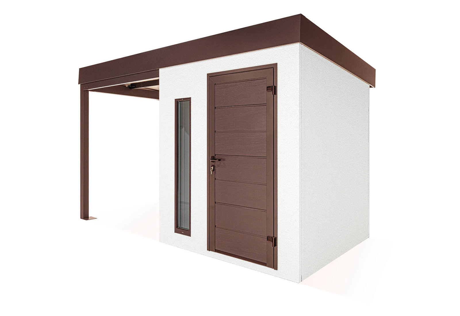 Discover an innovation in the construction industry - GARDEON® prefabricated garden houses with ready-made designer plaster from the Swiss brand KABE. The all-season facade is self-cleaning and can withstand water, high temperatures and all the vagaries of the weather with ease. Thanks to our unique technology, the steel wall is only 5 cm thick and, compared to a 20 cm thick conventional brick wall, you will save significantly on space in your garden and inside your garden house.