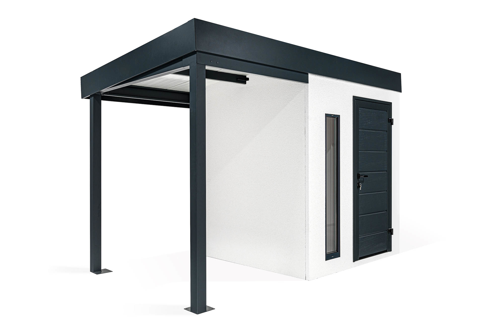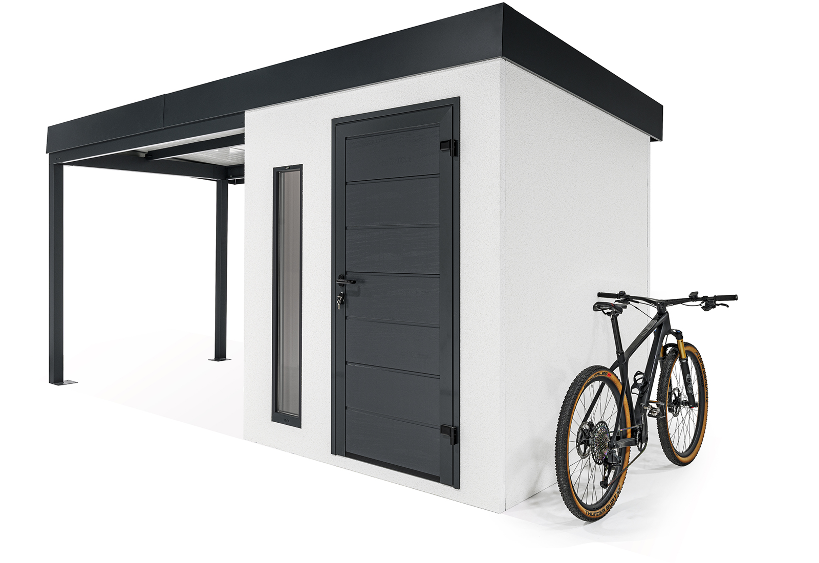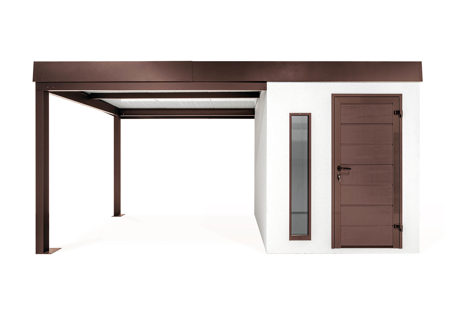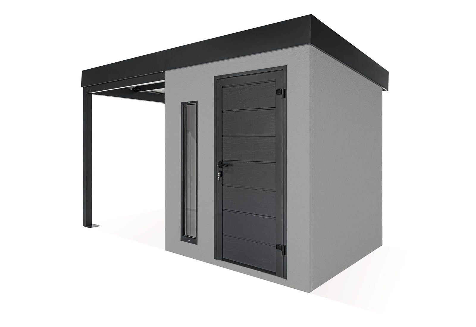 Discover an innovation in the construction industry - GARDEON® prefabricated garden houses with ready-made designer plaster from the Swiss brand KABE. The all-season facade is self-cleaning and can withstand water, high temperatures and all the vagaries of the weather with ease. Thanks to our unique technology, the steel wall is only 5 cm thick and, compared to a 20 cm thick conventional brick wall, you will save significantly on space in your garden and inside your garden house.