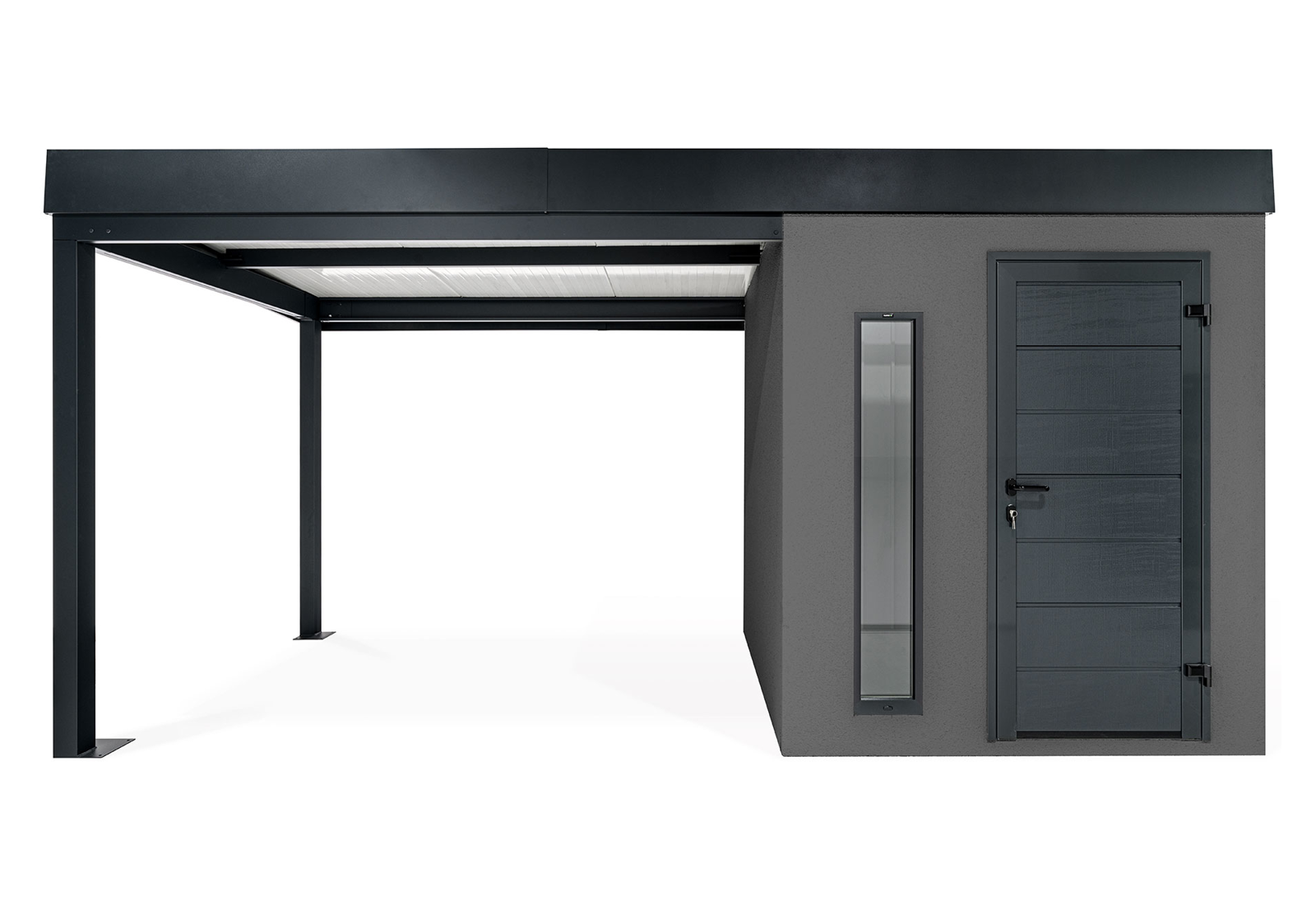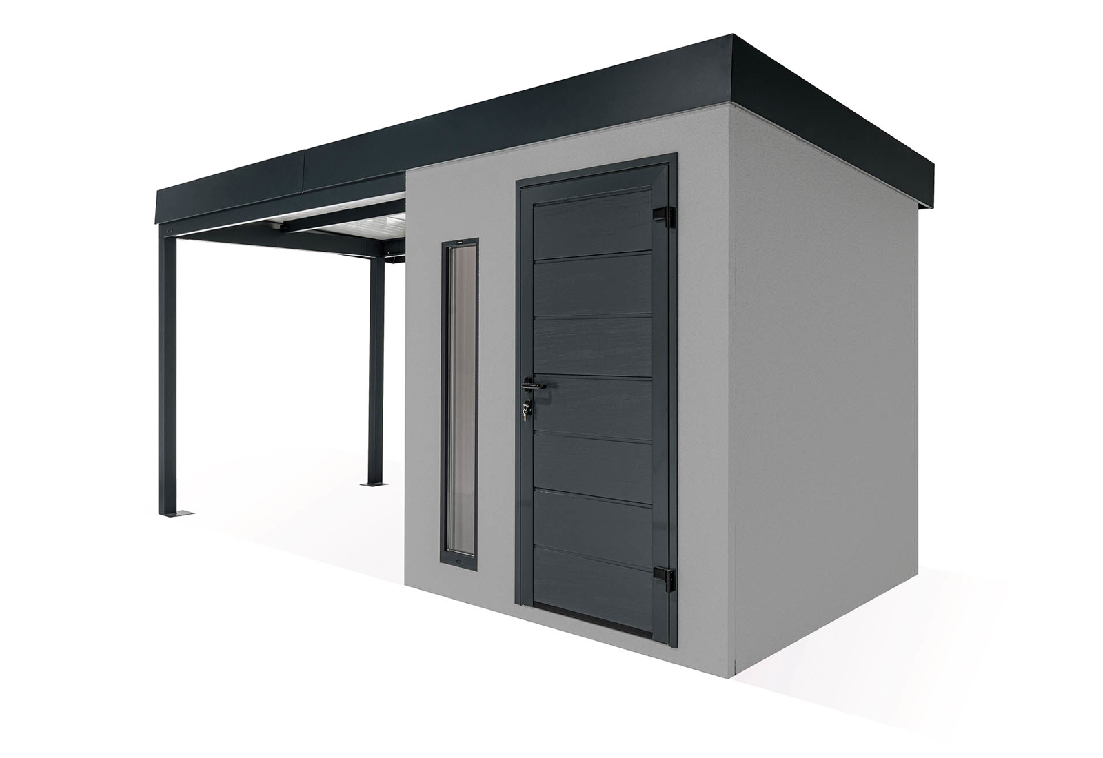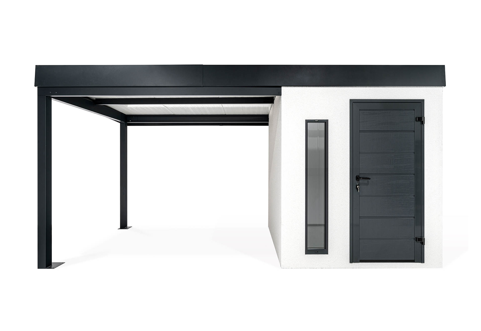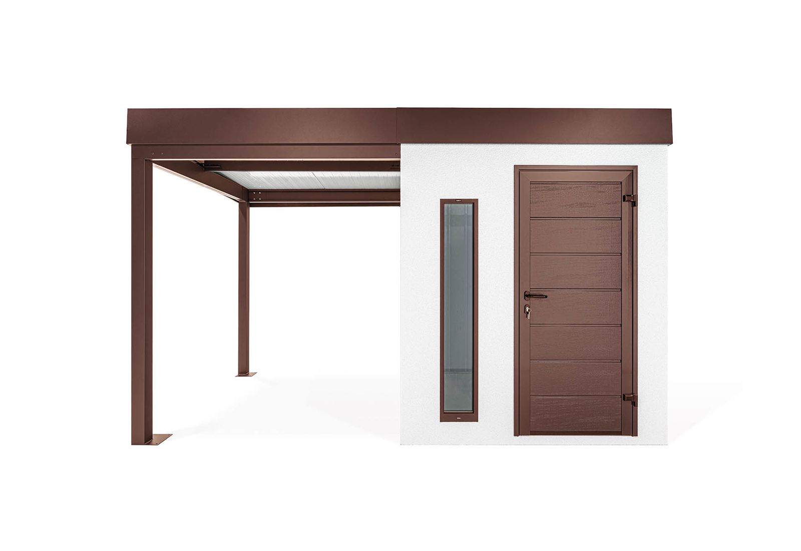 Discover an innovation in the construction industry - GARDEON® prefabricated garden houses with ready-made designer plaster from the Swiss brand KABE. The all-season facade is self-cleaning and can withstand water, high temperatures and all the vagaries of the weather with ease. Thanks to our unique technology, the steel wall is only 5 cm thick and, compared to a 20 cm thick conventional brick wall, you will save significantly on space in your garden and inside your garden house.