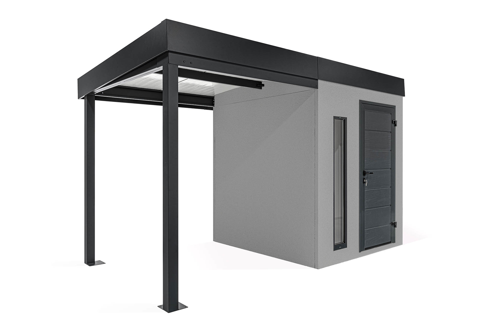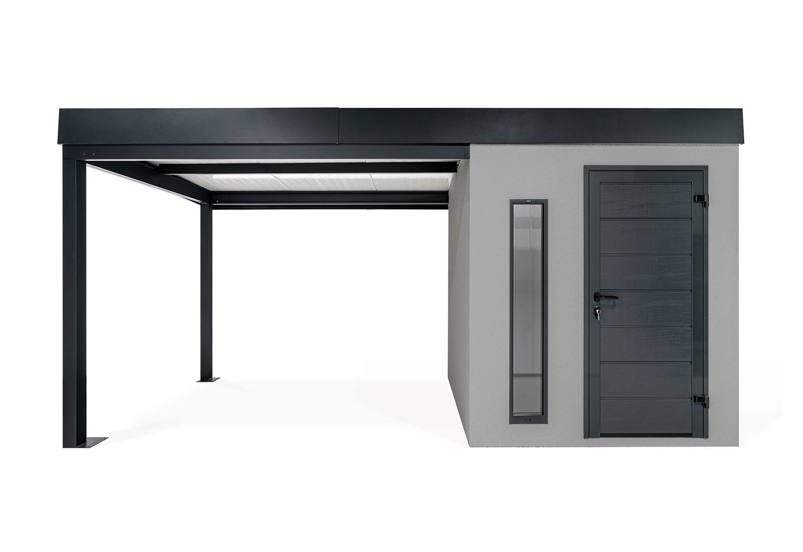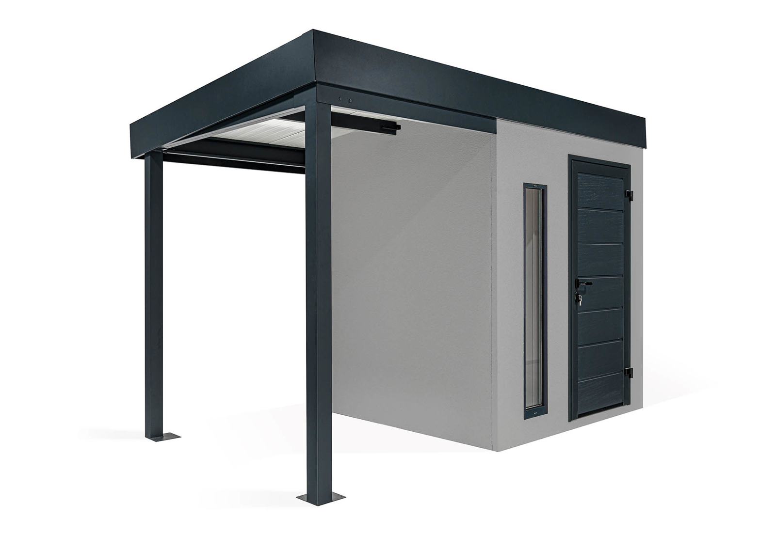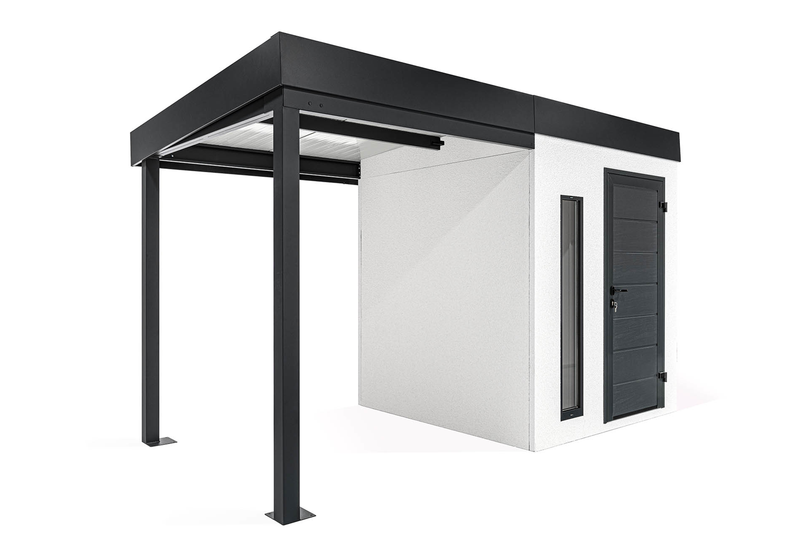 Discover an innovation in the construction industry - GARDEON® prefabricated garden houses with ready-made designer plaster from the Swiss brand KABE. The all-season facade is self-cleaning and can withstand water, high temperatures and all the vagaries of the weather with ease. Thanks to our unique technology, the steel wall is only 5 cm thick and, compared to a 20 cm thick conventional brick wall, you will save significantly on space in your garden and inside your garden house.