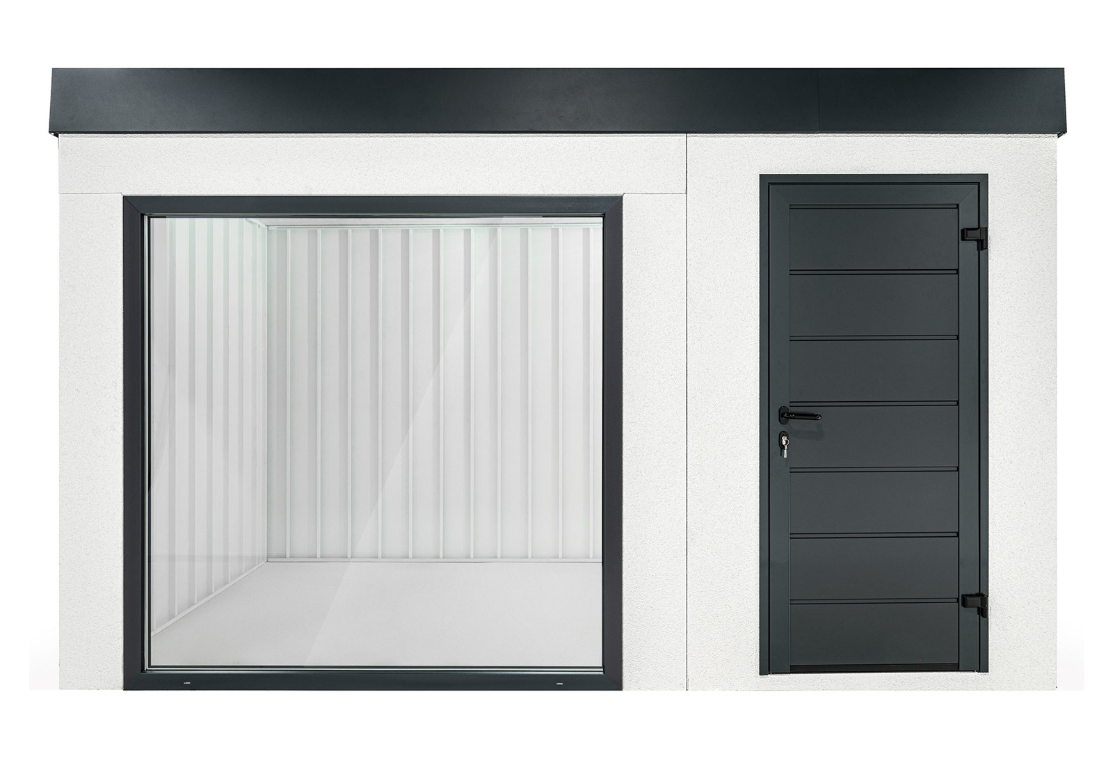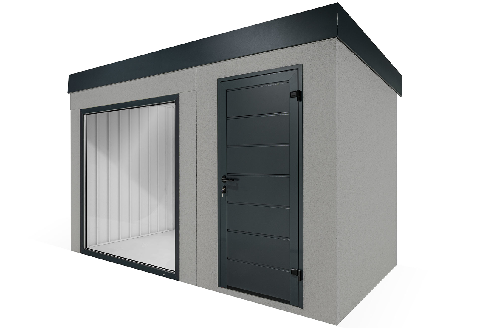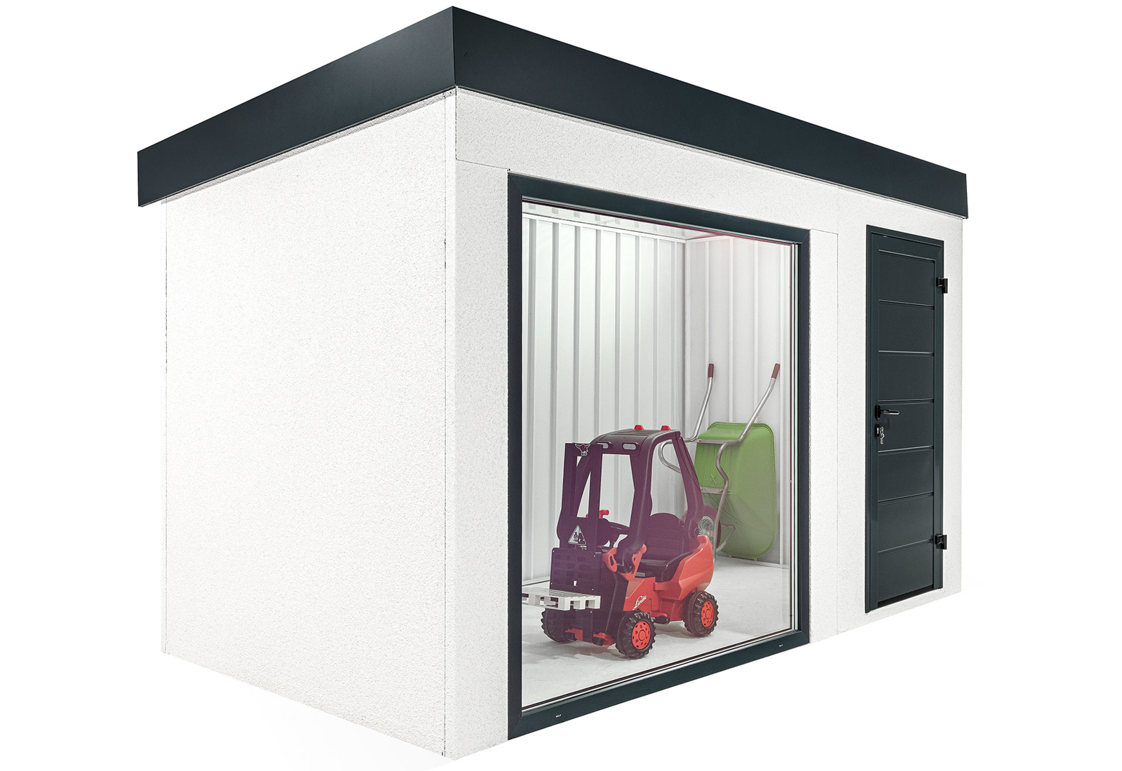 Discover an innovation in the construction industry - GARDEON® prefabricated garden houses with ready-made designer plaster from the Swiss brand KABE. The all-season facade is self-cleaning and can withstand water, high temperatures and all the vagaries of the weather with ease. Thanks to our unique technology, the steel wall is only 5 cm thick and, compared to a 20 cm thick conventional brick wall, you will save significantly on space in your garden and inside your garden house.