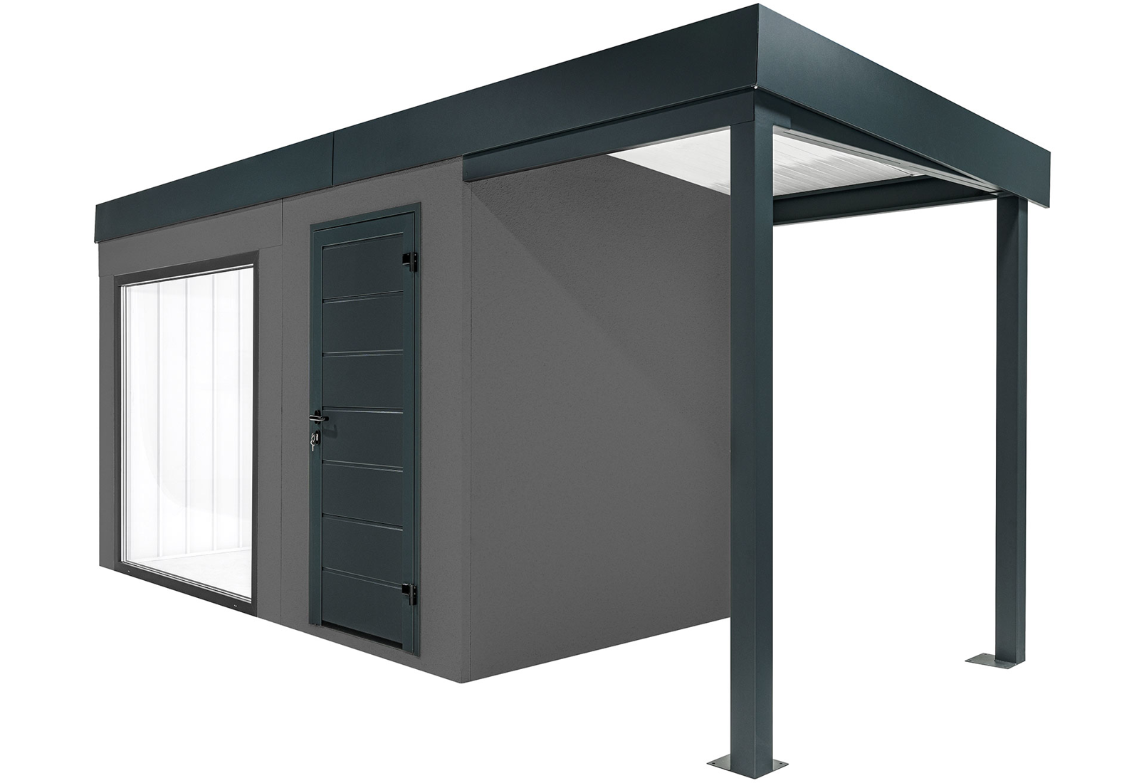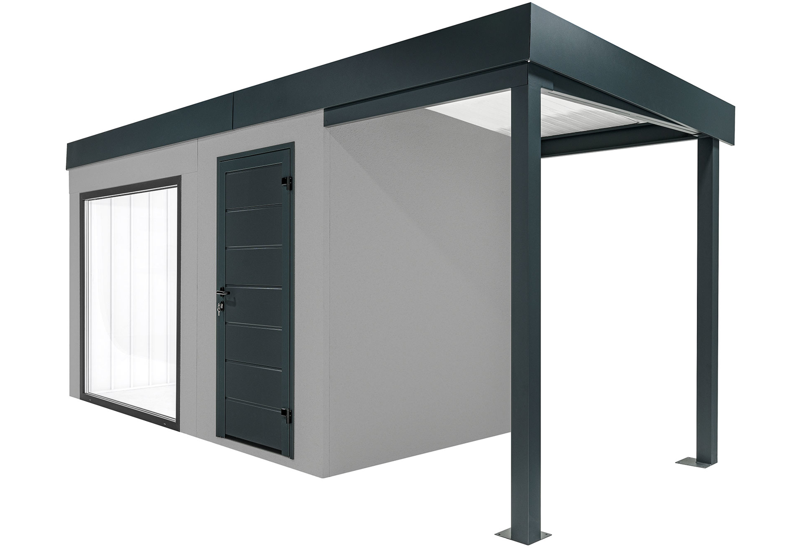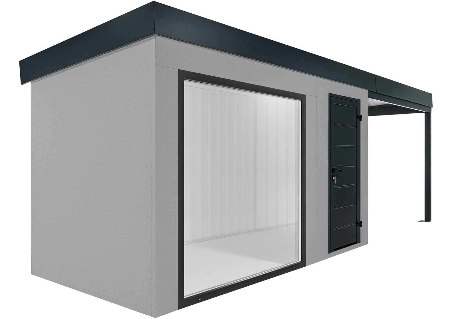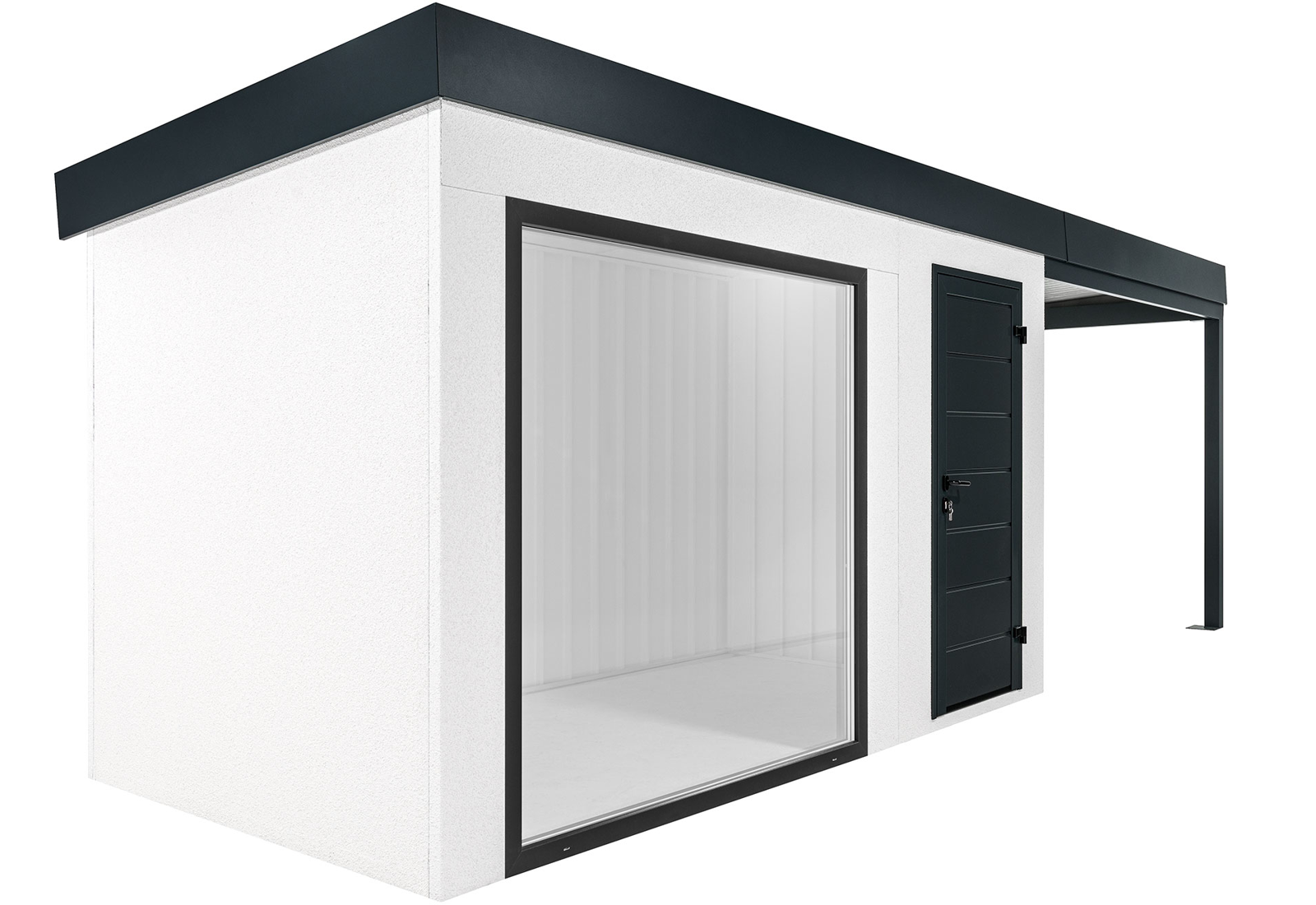 Discover an innovation in the construction industry - GARDEON® prefabricated garden houses with ready-made designer plaster from the Swiss brand KABE. The all-season facade is self-cleaning and can withstand water, high temperatures and all the vagaries of the weather with ease. Thanks to our unique technology, the steel wall is only 5 cm thick and, compared to a 20 cm thick conventional brick wall, you will save significantly on space in your garden and inside your garden house.