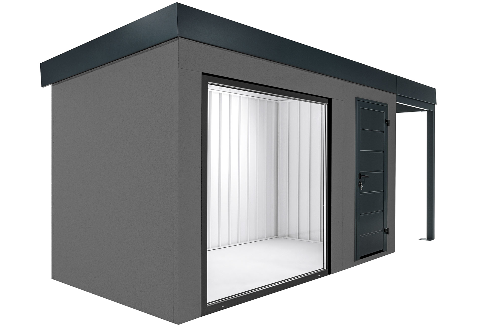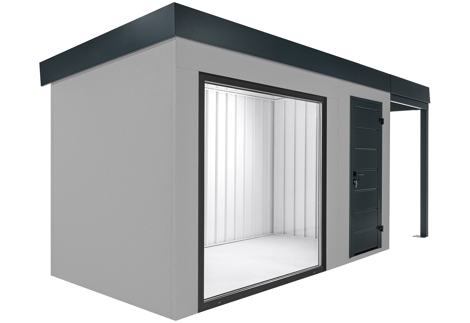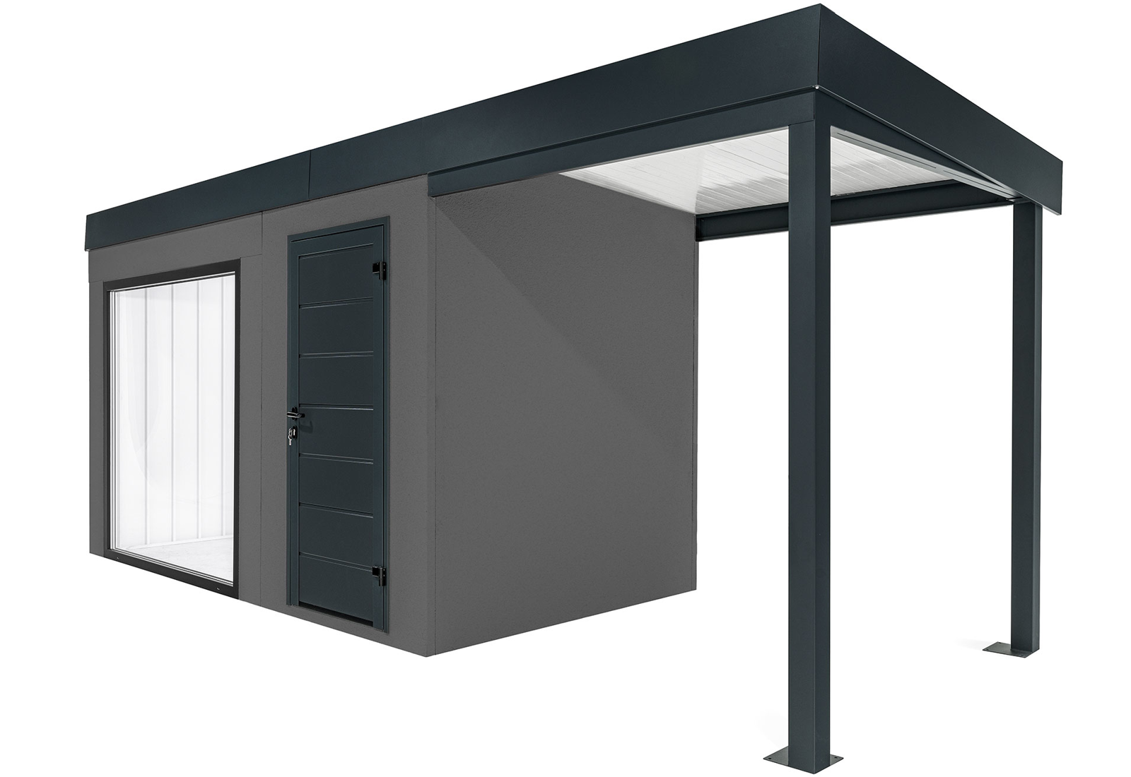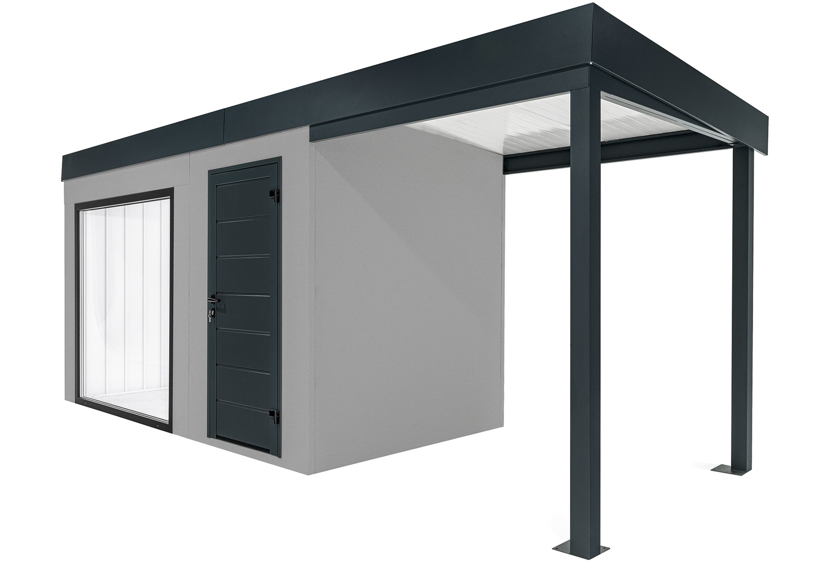 Discover an innovation in the construction industry - GARDEON® prefabricated garden houses with ready-made designer plaster from the Swiss brand KABE. The all-season facade is self-cleaning and can withstand water, high temperatures and all the vagaries of the weather with ease. Thanks to our unique technology, the steel wall is only 5 cm thick and, compared to a 20 cm thick conventional brick wall, you will save significantly on space in your garden and inside your garden house.