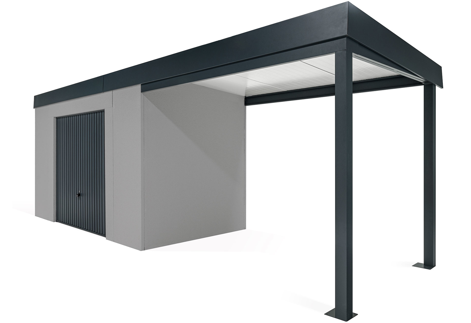 Discover an innovation in the construction industry - GARDEON® prefabricated garden houses with ready-made designer plaster from the Swiss brand KABE. The all-season facade is self-cleaning and can withstand water, high temperatures and all the vagaries of the weather with ease. Thanks to our unique technology, the steel wall is only 5 cm thick and, compared to a 20 cm thick conventional brick wall, you will save significantly on space in your garden and inside your garden house.