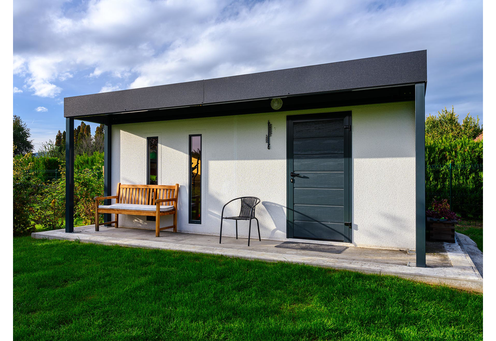 Discover an innovation in the construction industry - GARDEON® prefabricated garden houses with ready-made designer plaster from the Swiss brand KABE. The all-season facade is self-cleaning and can withstand water, high temperatures and all the vagaries of the weather with ease. Thanks to our unique technology, the steel wall is only 5 cm thick and, compared to a 20 cm thick conventional brick wall, you will save significantly on space in your garden and inside your garden house.