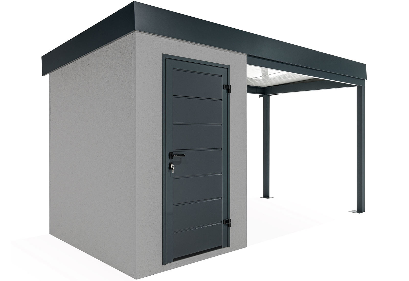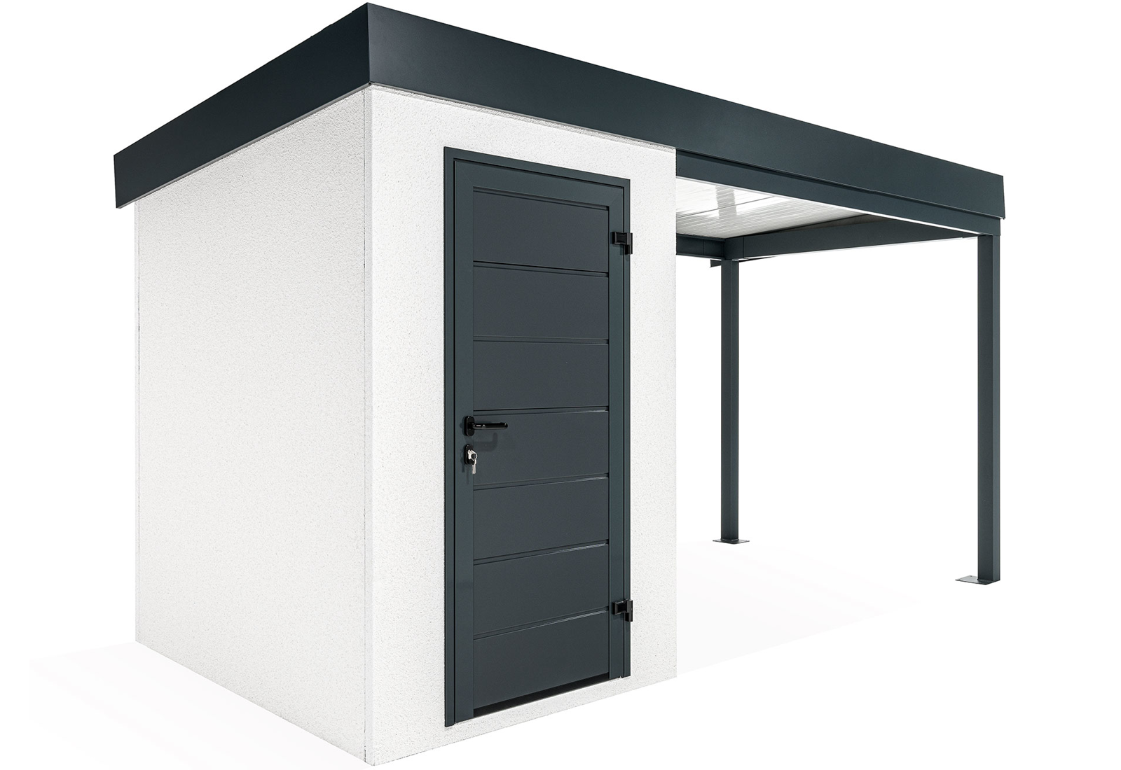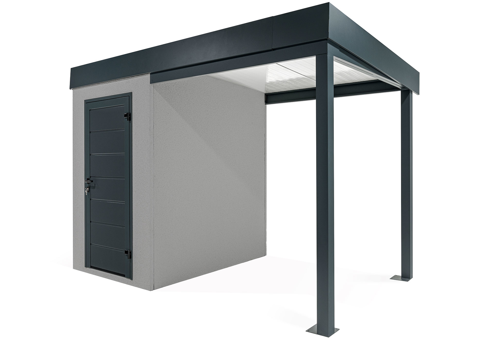 Discover an innovation in the construction industry - GARDEON® prefabricated garden houses with ready-made designer plaster from the Swiss brand KABE. The all-season facade is self-cleaning and can withstand water, high temperatures and all the vagaries of the weather with ease. Thanks to our unique technology, the steel wall is only 5 cm thick and, compared to a 20 cm thick conventional brick wall, you will save significantly on space in your garden and inside your garden house.