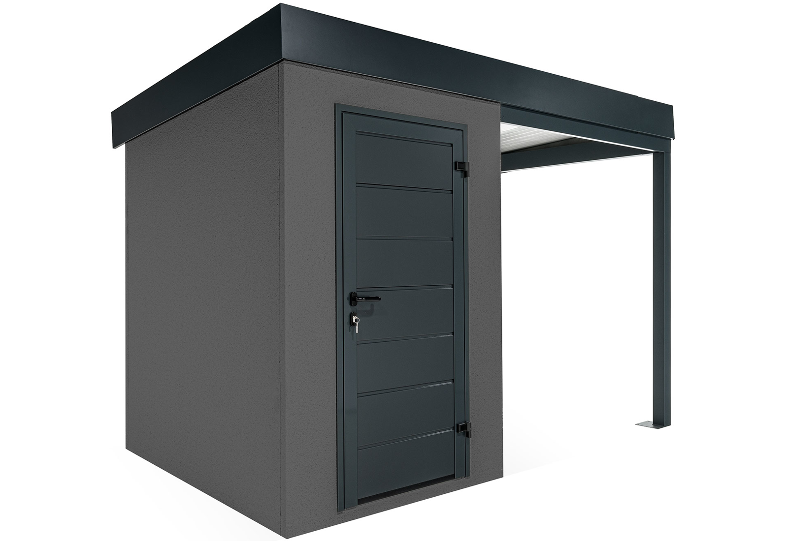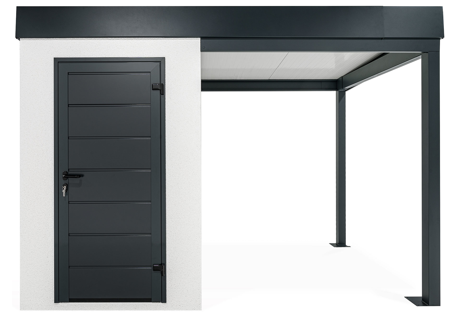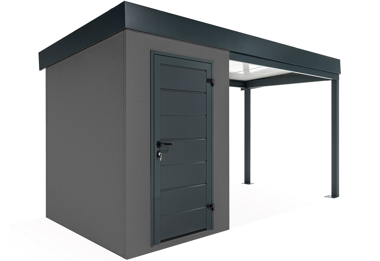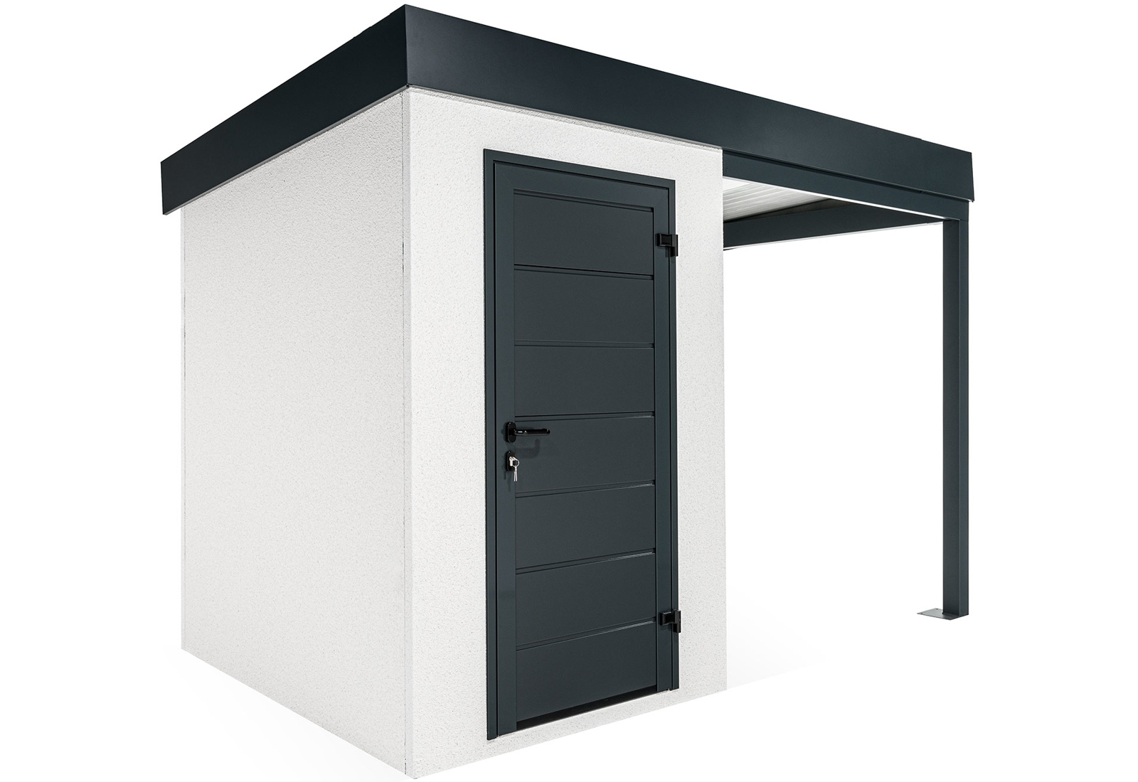 Discover an innovation in the construction industry - GARDEON® prefabricated garden houses with ready-made designer plaster from the Swiss brand KABE. The all-season facade is self-cleaning and can withstand water, high temperatures and all the vagaries of the weather with ease. Thanks to our unique technology, the steel wall is only 5 cm thick and, compared to a 20 cm thick conventional brick wall, you will save significantly on space in your garden and inside your garden house.